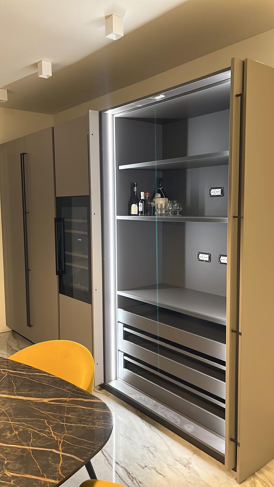 Le vetrine con vetro fumé alleggeriscono visivamente la composizione e aggiungono un elemento di design distintivo, mantenendo al tempo stesso ordine e funzionalità.